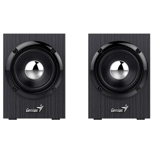 Genius SP-HF385BT — це компактні стереоколонки з конфігурацією 2.0, які ідеально підходять для якісного звучання з комп’ютера, смартфона чи планшета. Вони забезпечують чистий стереозвук потужністю 4 Вт завдяки дерев’яному корпусу, який зменшує вібрації та покращує акустику.
