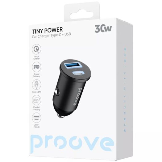 Автомобільний зарядний пристрій Proove Tiny Power USB + USB Type-C 30W Black