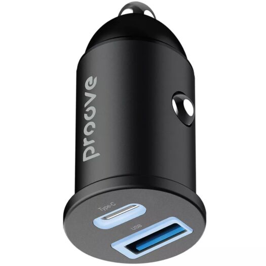 ОписАвтомобільний зарядний пристрій Proove Tiny Power USB + USB Type-C 30W Black