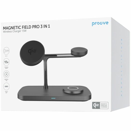 Бездротовий зарядний пристрій Proove Magnetic Field Pro 3 in 1 Qi2 Black