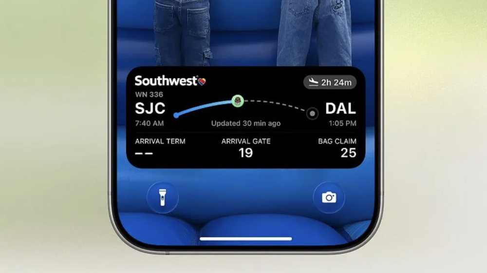 На екрані блокування тепер можна бачити статус рейсу у вигляді живої активності: час посадки, номер гейта, затримки, багажна стрічка тощо. Це працює без сторонніх застосунків — достатньо зберегти рейс у Wallet.