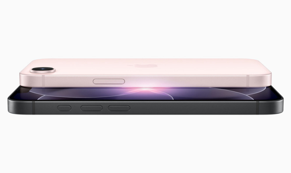 iPhone 17e зберіг дизайн iPhone 16e: плоскі грані, алюмінієва рамка та матова задня панель. Візуальних змін мінімум, але переднє скло тепер Ceramic Shield 2, а серед кольорів зʼявився новий світло-рожевий.