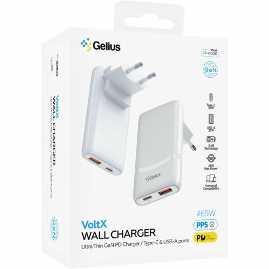 Gelius VoltX GaN 65W — це нове покоління зарядних пристроїв, яке поєднує в собі високу потужність, енергоефективність та передові технології швидкої зарядки. Цей зарядний блок створений для тих, хто цінує швидкість, надійність і компактність у щоденному використанні — вдома, в офісі та в подорожах.