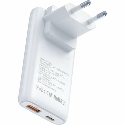 Мережевий зарядний пристрій Gelius VoltX GP-HC067 GaN 65W 1USB + 1Type-C White