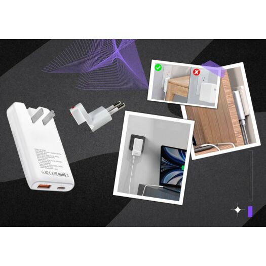 Технологія GaN (нітрид галію) забезпечує ефективніше перетворення енергії, менший нагрів та дозволяє зменшити габарити пристрою без втрати потужності. Це означає: