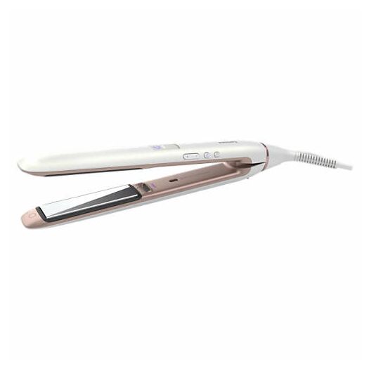Випрямляч для волосся MoistureProtect з титановими пластинами для більш швидкого і ефективного випрямлення. Датчик перевіряє стан волосся 30 раз в секунду і підбирає оптимальну температуру, не пересушує волосся і зберігаючи природну вологу.