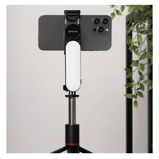 Proove Selfie Lume — це трипод для смартфона з вбудованою LED-підсвіткою та бездротовим пультом, який підходить для зйомки відео, Reels, TikTok, прямих ефірів, онлайн-уроків і фото. Довжина до 1110 мм дозволяє знімати у повний зріст або виставити камеру на рівні очей для стабільного кадру.
