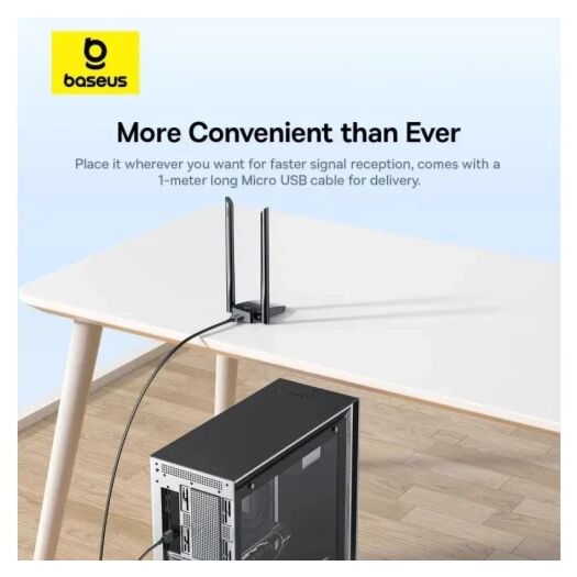 Wi-Fi адаптер Baseus FastJoy Series є надійним рішенням для забезпечення швидкого та стабільного інтернет-з'єднання. Адаптер підтримує сучасний стандарт Wi-Fi 5 (802.11ac) та гарантує високу загальну швидкість передачі даних до 1800 Мбіт/с. Стабільність сигналу та надійне з'єднання критичні для комфортної роботи в інтернеті, безперебійного перегляду потокового відео та онлайн-ігор без затримок.