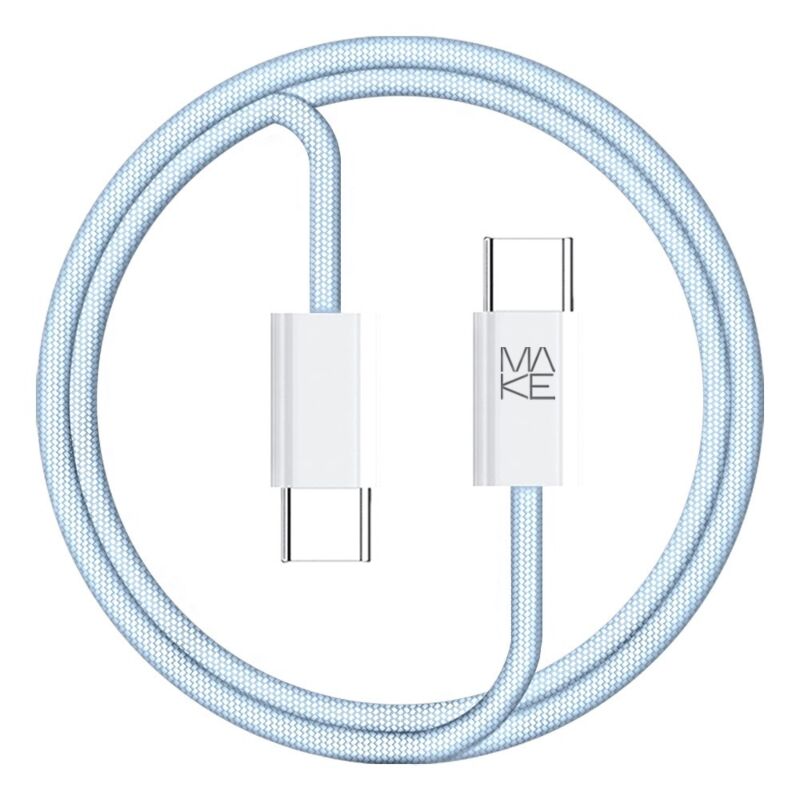 Зарядний кабель MAKE Type-C to Type-C PD 65W 1м Nylon Blue