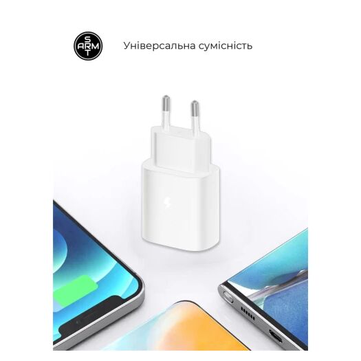 Зарядний пристрій ArmorStandart AR-TA800W USB-C 25W White + кабель USB-C to USB-C (ARM63804)